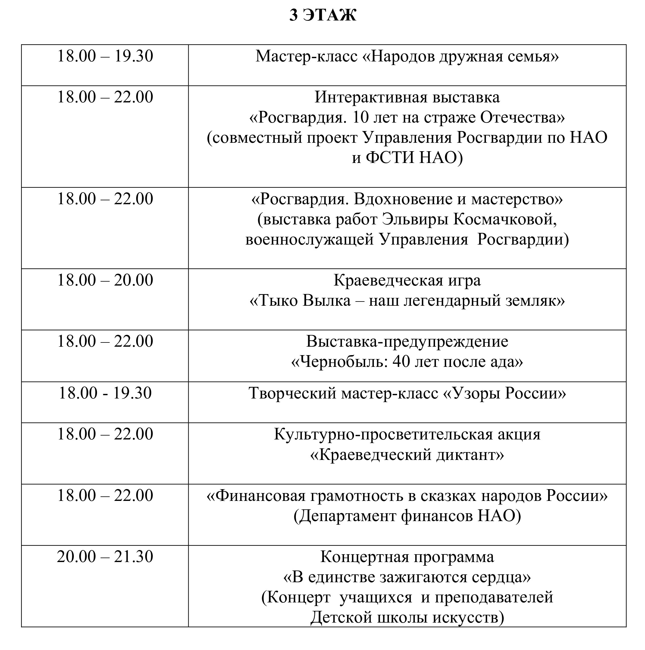 В этом году «Библионочь» пройдёт под девизом «Единство народов — сила России!». Поэтому особое внимание организаторы акции обратят на национальную литературу, традиции и культуру народов России. Начало в 18:00.
